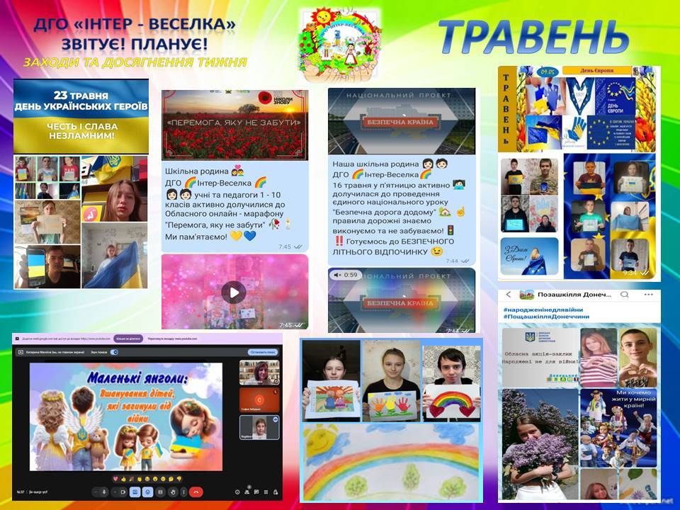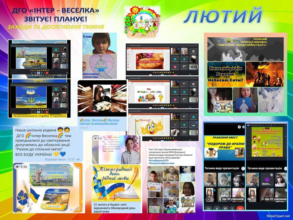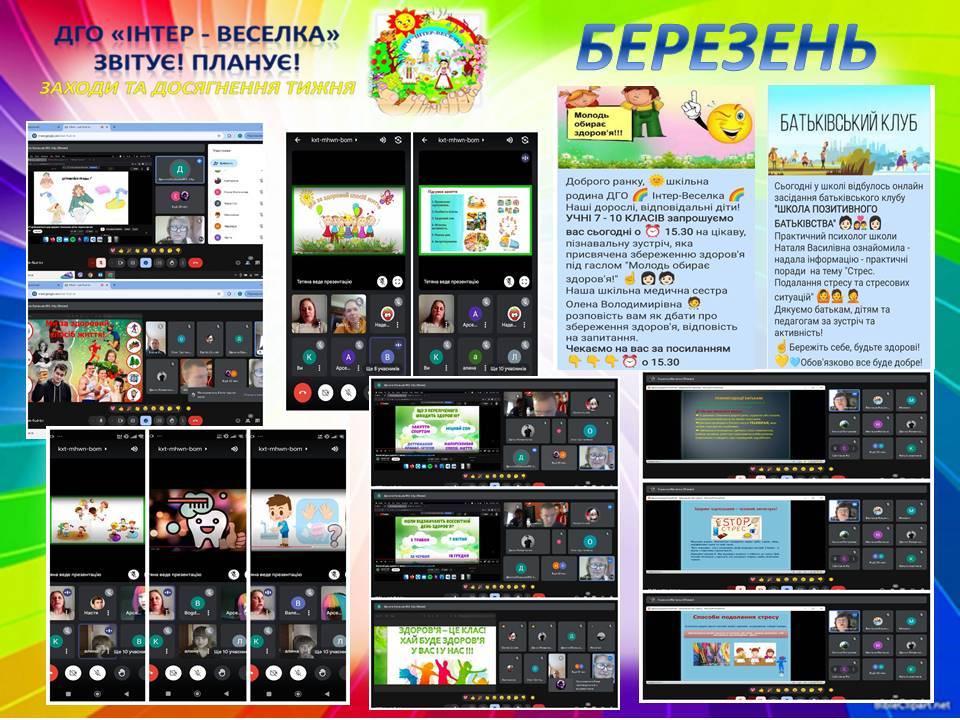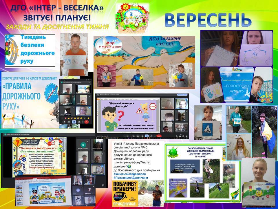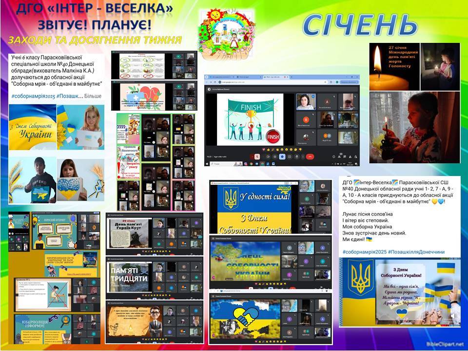 Тиждень у Парасковіївській СШ№40 Донецької обласної ради був насичений не лише знаннями, виховною діяльністю, а й піклуванням про ментальне здоров'я, було реалізовано короткостроковий проєкт "Інтер - Веселка ти і я разом ми шкільна сім'я!" Було цікаво, корисно, пізнавально! Проведено онлайн зустрічі "У світі емоцій", створено галерею світлин "Скарбничка радості", працювала онлайн - майстерня "Веселка щастя"!