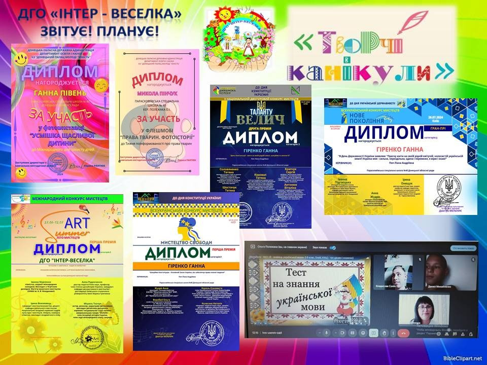 Майже промайнуло наше літечко, а разом з ним і завершилася цікава, пізнавальна, весела "Літня школа" де ми з вами, діти, цікавеньке дізнавались, у вікторинах участь приймали, творчо розвивались та й активно до обласних акцій приєднувались. 👍Ми були на висоті, бо ще і свої творчі роботи до конкурсів різного рівня надсилали, як результат Відзнаки, ДИПЛОМИ та ПОДЯКИ за свої старання мали!