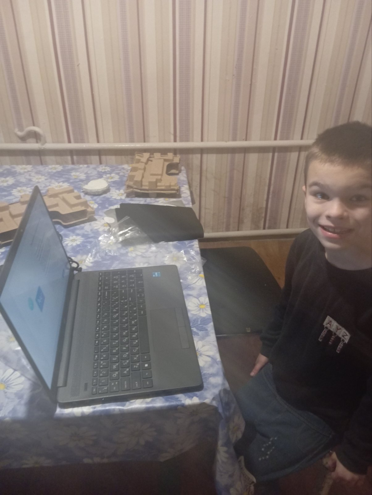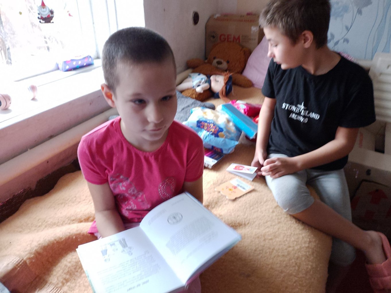 Отримали посилку від школи. Дитячі речі безкоштовно надала наша давня добра знайома з м. Бориспіль Любов Холоденко. Аліна отримала теплу куртку, брюки, нижню білизну, шкарпетки, рюкзачок та шоколадку.
