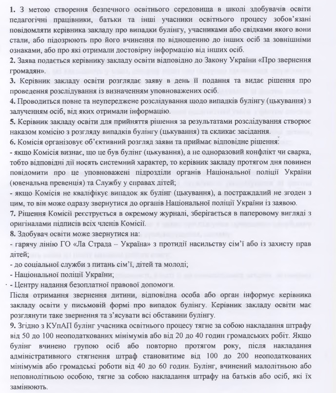 Порядок подання та розгляду заяв про випадки булінгу в закладі освіти.